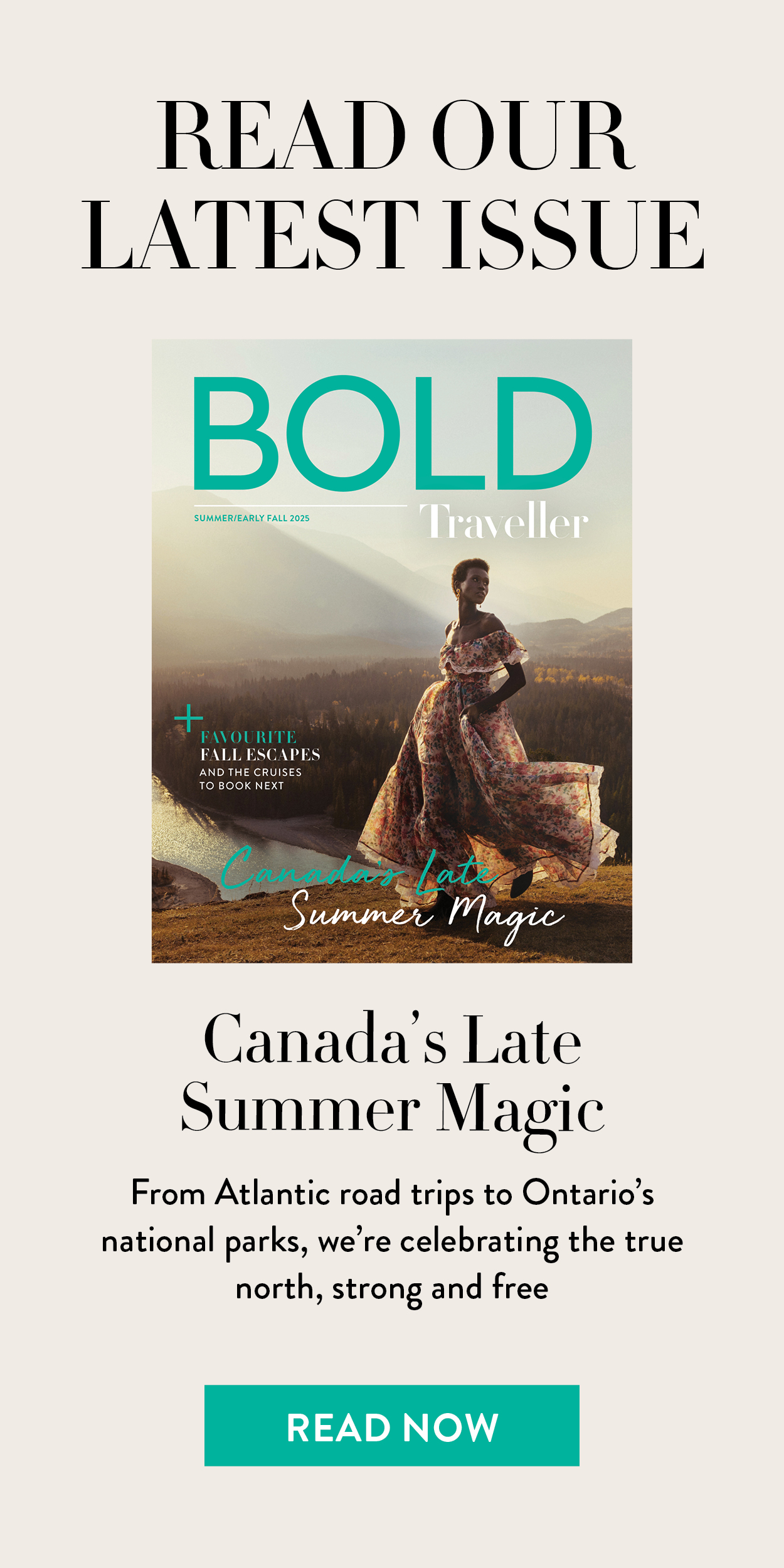ADVERTISEMENT Featured Stories Bucket List Postcard from: Icefields Parkway — Canada’s Ultimate Bucket List Road Trip BY Vawn Himmelsbach CENTRAL + SOUTH AMERICAThis Central American Gem Offers Beautiful Beaches, World-Class Surf, and a Rich Cultural HeritageBY Bold Magazine EditorsCRUISESJoin Jann Arden for an Exclusive Mediterranean Cruise on Scenic Eclipse II in 2026BY Vivian VassosFOOD + DRINKSIndian Food Reinvented in Toronto: Taste Pukka on St. Clair WestBY Marlon MorenoRESORTS REVIEWResort Review: Hamilton Princess & Beach Club – The Pink Palace of BermudaBY Vivian Vassos ADVERTISEMENT Latest News All Inclusive Set Sail in Style This Season: Explore the New Luxury Cruise Ships You Can’t Miss BY Toby Saltzman Hotels 9 Stylish Hotels Around the World for Design Aficionados BY Bold Magazine Editors Europe This French Town Is Known as the ‘Venice of the Alps’ With Canals, Turquoise Lakes, and Charming Villages BY Paul Gallant Europe Solo in Paris: How to Enjoy the City of Light on Your Own BY Martha Chapman See more ADVERTISEMENT PARTNERED CONTENT Fall in Love with Grenada Where to go next: Grenada MSC Cruises’ MSC Yacht Club gives fans of cruising a next-level travel experience BY Marlon Moreno This could be the best luxury, all-inclusive resort in Playa del Carmen: Impressions Moxché by Secrets BY Bold Magazine Editors A Family Affair in Paradise BY Bold Magazine Editors Embrace Your Nature: Be inspired at The Reserve, Paradisus by Meliá’s adults-only oasis BY Bold Traveller Partnership Places to Stay All Inclusive Resorts Why Sandals Royal Bahamian is the Bahamas’ Most Elegant All-Inclusive Resort BY Marlon Moreno Hotel Reviews Hotel de Sers Paris Review: Five-Star Luxury in... BY Ruth J Katz Lodges + Villas From Forest to Table: Truffle Hunting in Umbria... BY Aaron Rasmussen Europe The Bold List: 8 of Europe’s Most Stylish... BY Bold Magazine Editors ADVERTISEMENT EATING AND DRINKING Food + Drinks Why SingleThread Restaurant Is a Must-Visit for Fans of California Cuisine and Sustainable, Farm-to-Table Dining BY Renee Suen Food + Drinks Eating Like a Local in Vietnam: Hoi An, Hanoi, and Ho Chi Minh City Food Tour BY Vawn Himmelsbach City Guide From Paris to Lima: 7 Hidden Restaurants Every Food Lover Should Know BY Shinan Govani Bars + Lounges 8 Secret Speakeasy Cocktail Bars – From Toronto to New York to London BY Doug Wallace Europe Trastevere: Rome’s Bohemian Neighborhood Every Foodie Must Explore BY Anita Draycott ADVERTISEMENT ADVERTISEMENT Wellness + Wellbeing Wellness Retreats 3 Proven Wellness Retreats to Lose Weight and Recharge Your Health BY Jennifer Merrick Ship Review Inside Explora Journeys’ Ocean Wellness Spa: Relaxation at Sea BY Vivian Vassos Mexico Best Wellness Retreat in Mexico: A Week at Rancho La Puerta BY Margaret Swaine Central + South America Is Tabacón Grand Spa Thermal Resort The Ultimate Wellness Destination in Costa Rica? BY Darcy Rhyno ADVERTISEMENT EDITORS PICK Style Red Alert: Why Fashion’s Favourite Hue Is Dominating Every Scene BY Bold Magazine Editors Cocktails + Spirits Rum Cocktails with Appleton Estate’s master distiller BY Vivian Vassos Beach Gateway This island in the Caribbean plays host to... BY Charlene Rooke Resorts Sun, Sand & Serenity: Finding Bliss at Melia... BY Charmaine Noronha Subscribe to our Newsletter