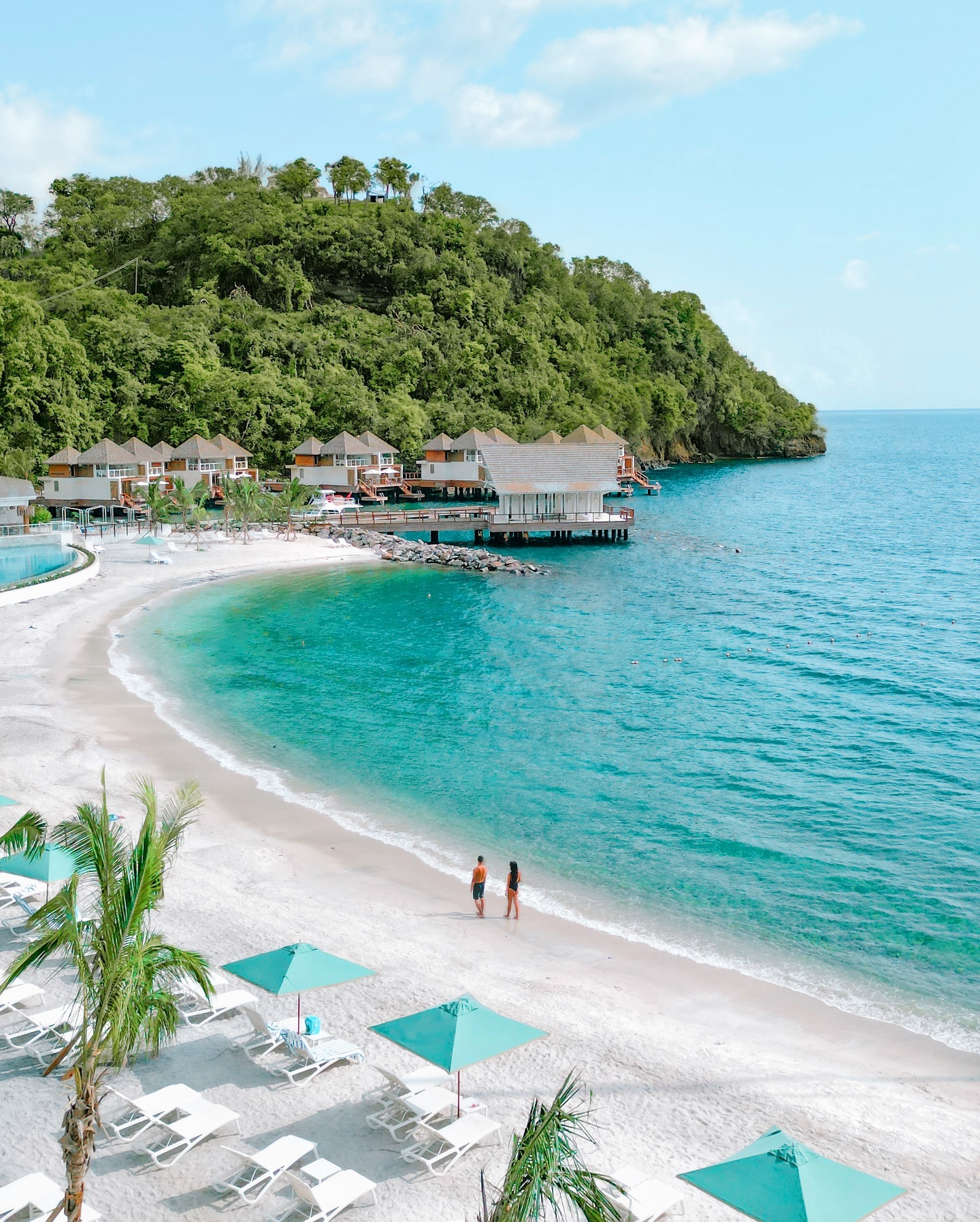 Tucked between lush mountains and the Caribbean Sea, Sandals Saint Vincent’s Vincy Overwater Two-Story Villas perch above Buccament Bay, blending rainforest serenity with stunning ocean views. Photo: Sandals Resorts.