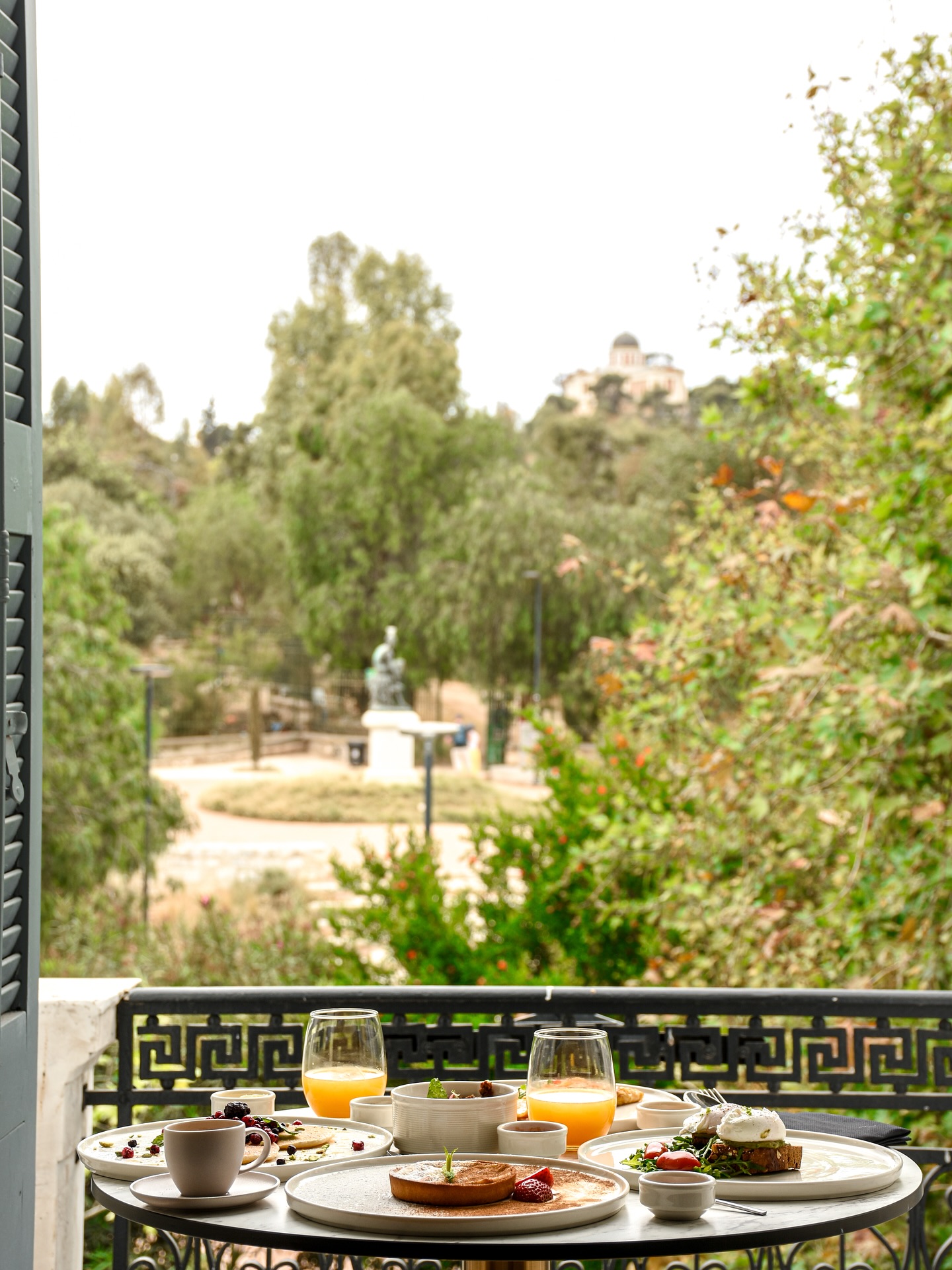 I’m intoxicated by the sweet scent of vanilla tobacco that permeates the space, and enthralled that the suites at La Divina are all named after famous classic songs and operas performed by Callas, including La Boheme, La Vestale and Ave Maria. Some offer views of Adrianou Street and the distant Observatory, while others face the courtyard and the Acropolis. Select suites include a private jacuzzi and balcony with Parthenon views. Exhausted after a full day of exploring the city, I can’t wait to take a waterfall-style shower, slip into my cozy bathrobe and slippers and pamper myself with the complimentary Olive Era amenities. After all, when in Greece, do as the Greeks do, and infuse your skin with olive oil and a medley of natural Greek extracts. After waking up refreshed, I head to the courtyard for a quintessential Greek breakfast. Pro tip: order the ‘Kayanas’ – perfectly seasoned scrambled eggs with feta and tomato, served on a freshly-made, toasted bun.