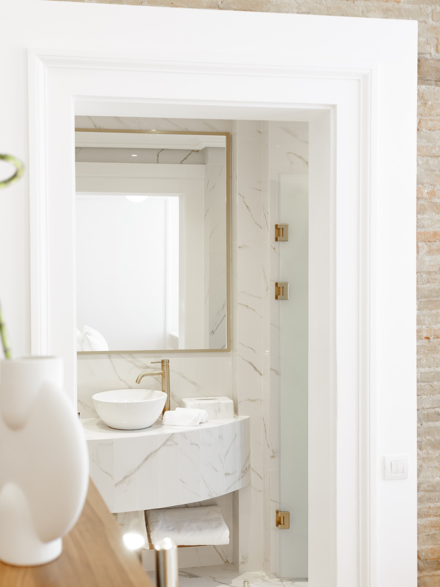 Opened in April 2024, the former Odeon Athenaeum dedicated to Callas is now home to La Divina, a stunning, 12-suite boutique hotel that honours both the performer and her legacy. It was also named one of Time magazine’s World’s Greatest Places to Stay in 2025. I climb the grand, marble steps and pass through striking blue front doors into a lobby where soaring ceilings compliment marble floors, exposed original stone walls, intricate classical plasterwork and abundant natural light.